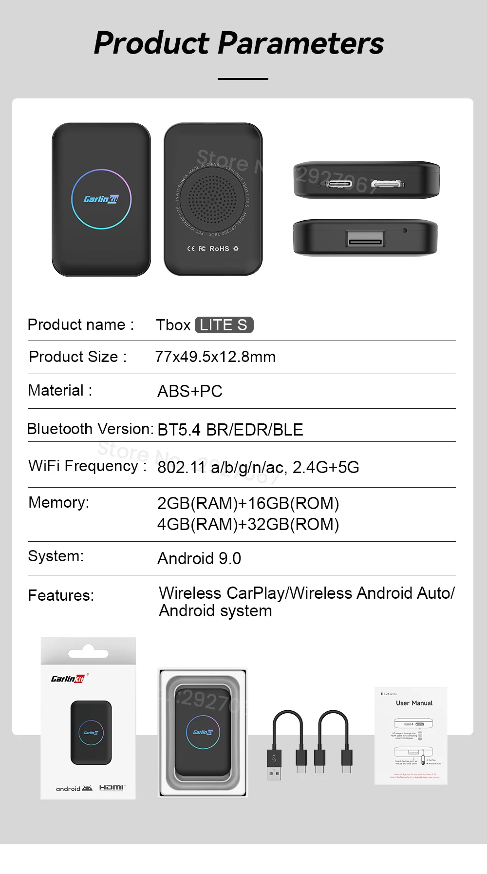 Mesmo que a memória do dispositivo seja de apenas 2 GB + 32 GB (2 GB + 16 GB), já é suficiente se você estiver mais em conexão sem fio com seu celular, isso é realmente uma combinação econômica de CarPlay/AA sem fio e Android ai box.Você pode obter os recursos abaixo pelo dispositivo.