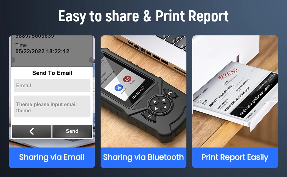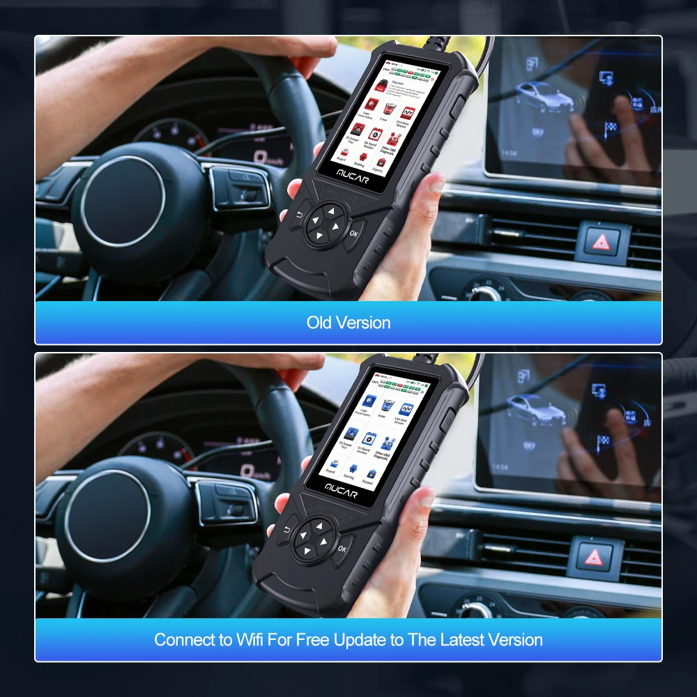 4 em 1 Live Data Stream: MUCAR CDE900 carro código scanner suporta 4 em 1 dados exibir, salva, lê e imprime relatórios de saúde.Atualização em um clique via WIFI: Carregue a versão mais recente, correções de bugs, cobertura de novos modelos de veículos, parâmetros recém-adicionados e funcionalidade em seu scanner.One-Click Print Diagnostic Report