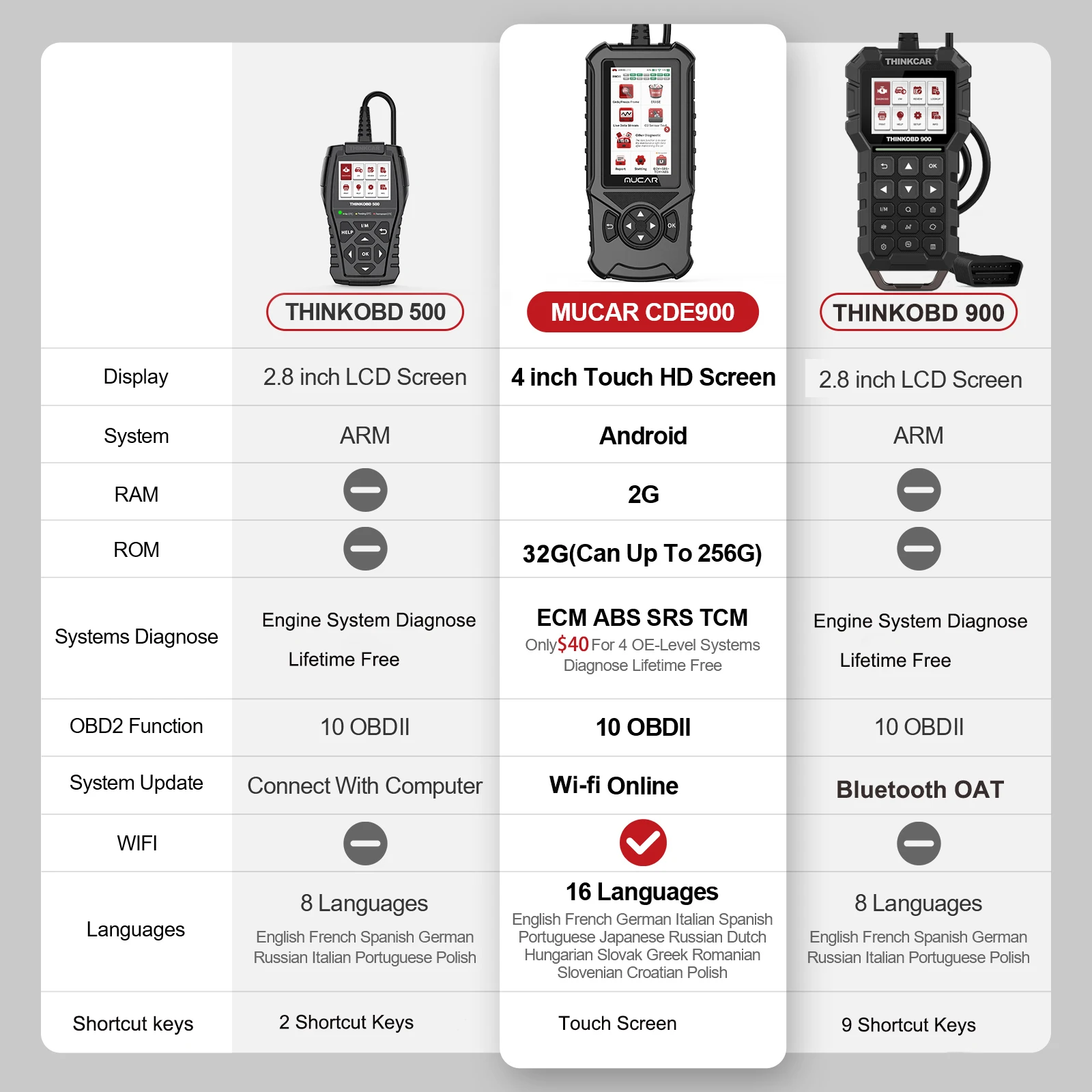 ?CDE900 próprio tem somente OBD2 diagnostica, você precisa de comprar '4 sistemas' para diagnosticar sistemas de ECM/SRS/ABS/TCM, clique por favor a relação abaixo à compra.