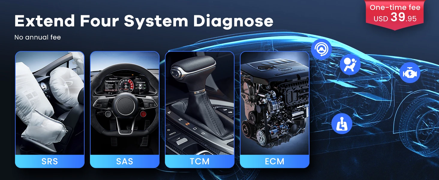 $39.95 for 4 systems diagnosis (Engine,Brake,Airbag,Transmission) no annual fee