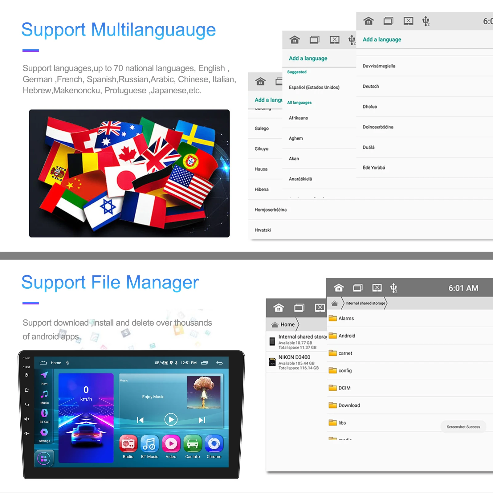 ?1080P de alta definição: tela de toque de capacitância total para fácil operação, interface de usuário bem projetada apenas para carro