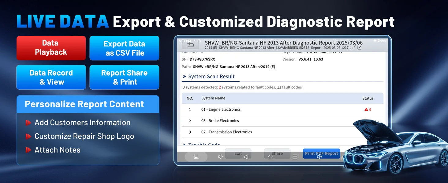XTOOL D7S Key Selling Point 3: Diagnostic Report V2.0
