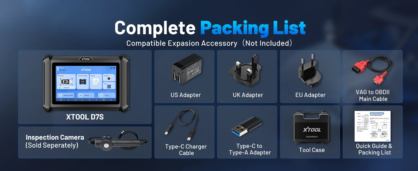 O XTOOL D7S diagnostica mais de 85 marcas globais de automóveis, mais de 140 modelos e mais de 10.000 veículos americanos, europeus e asiáticos (não compatível com caminhões pesados de 24 V), incluindo: