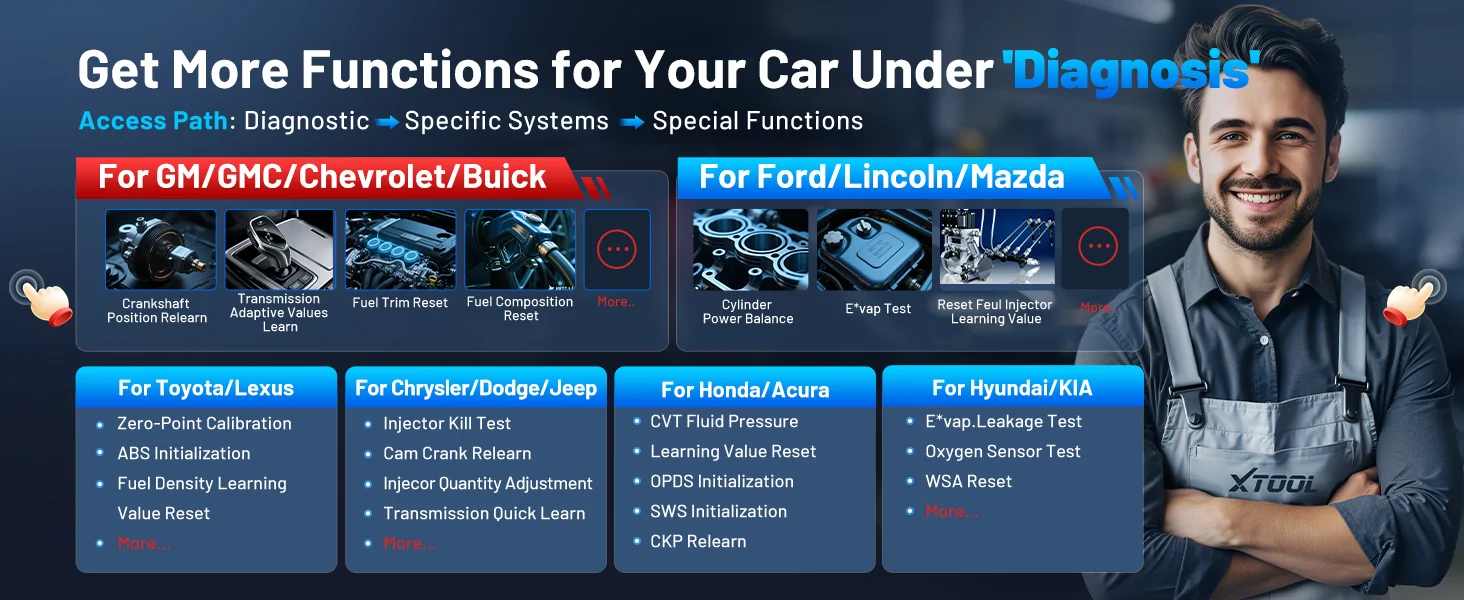 XTOOL D7S Car Diagnostic Tool Function 5: 39+ Special Functions